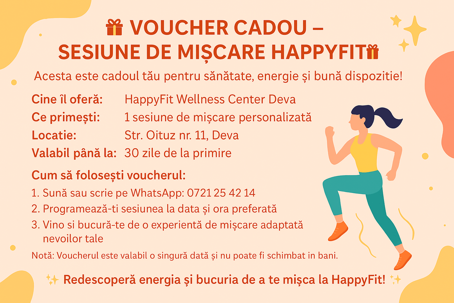 Dacă ești pregătit(ă) să faci pasul spre o viață sănătoasă și echilibrată, te așteptăm la HappyFitWellnessCenterDeva, unde împreună vom construi cea mai bună versiune a ta.